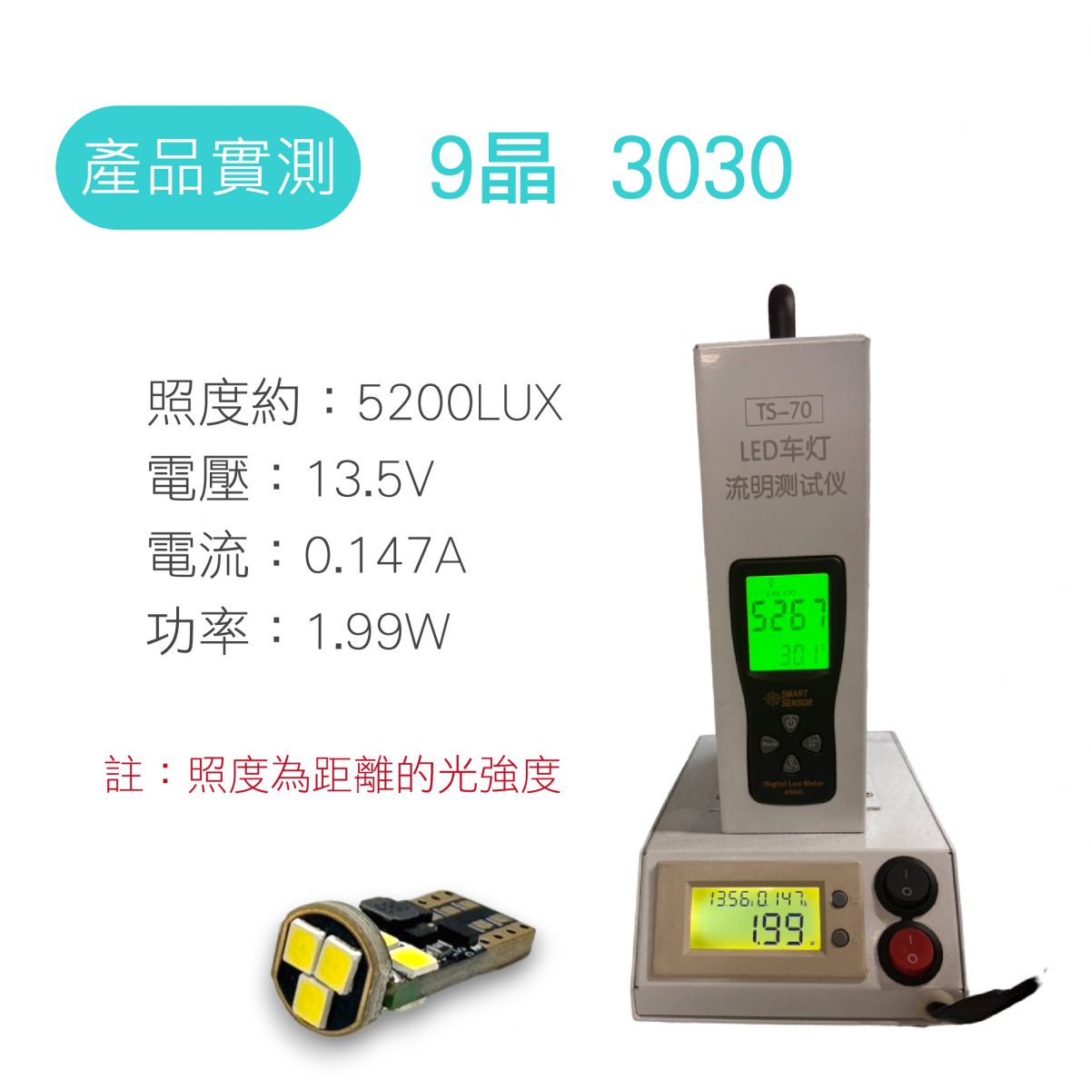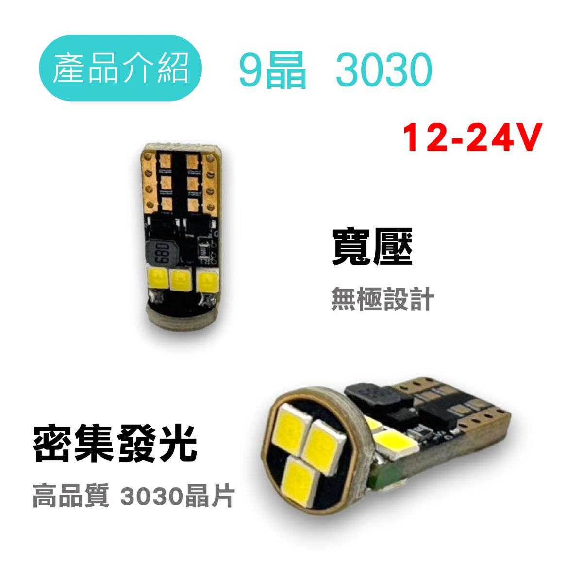 產品名稱:LED T10 12-24V 3030 9晶 白光