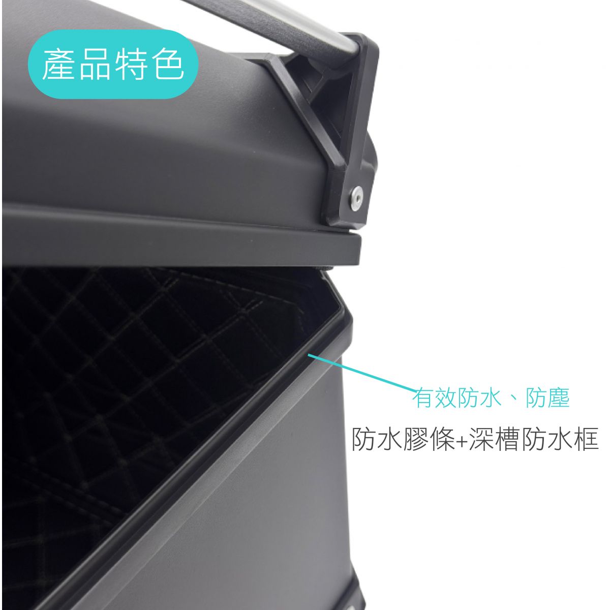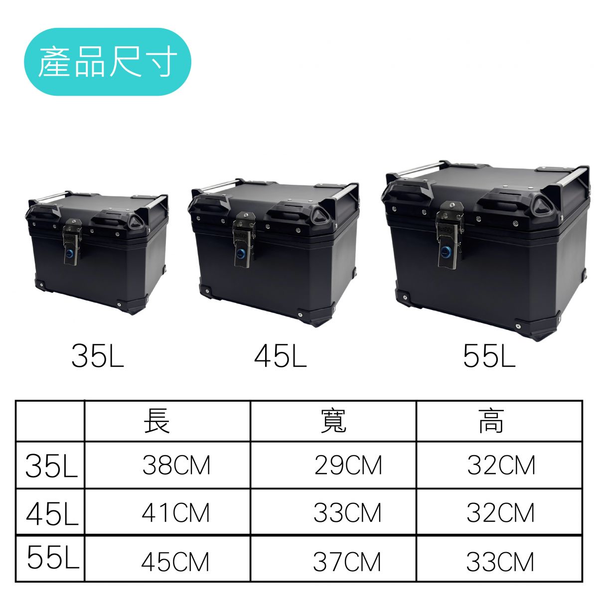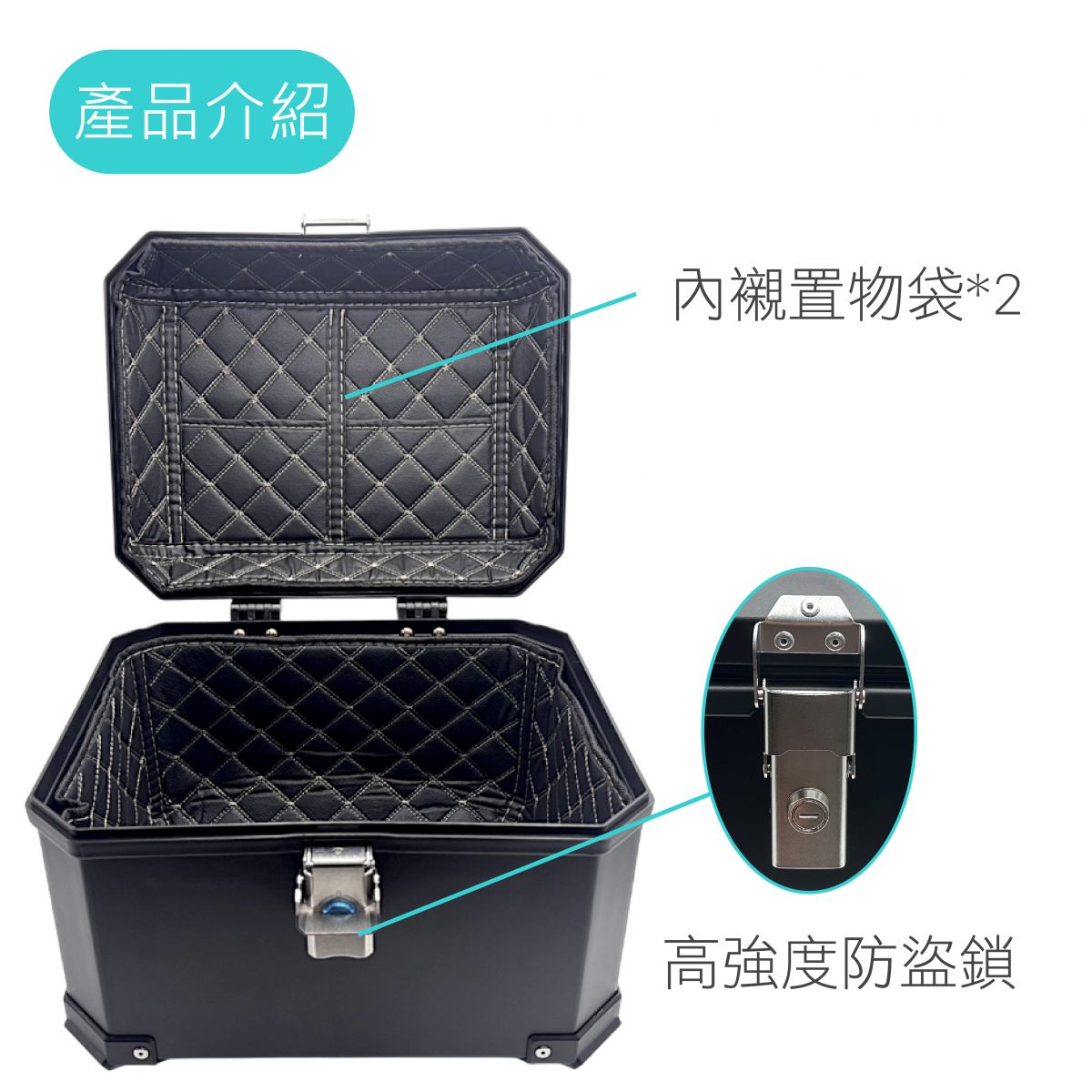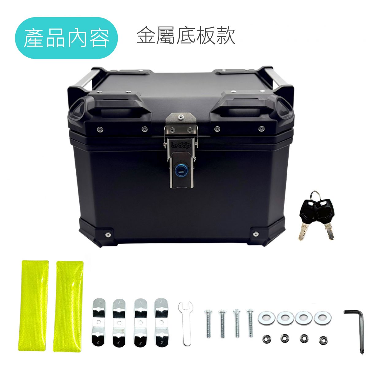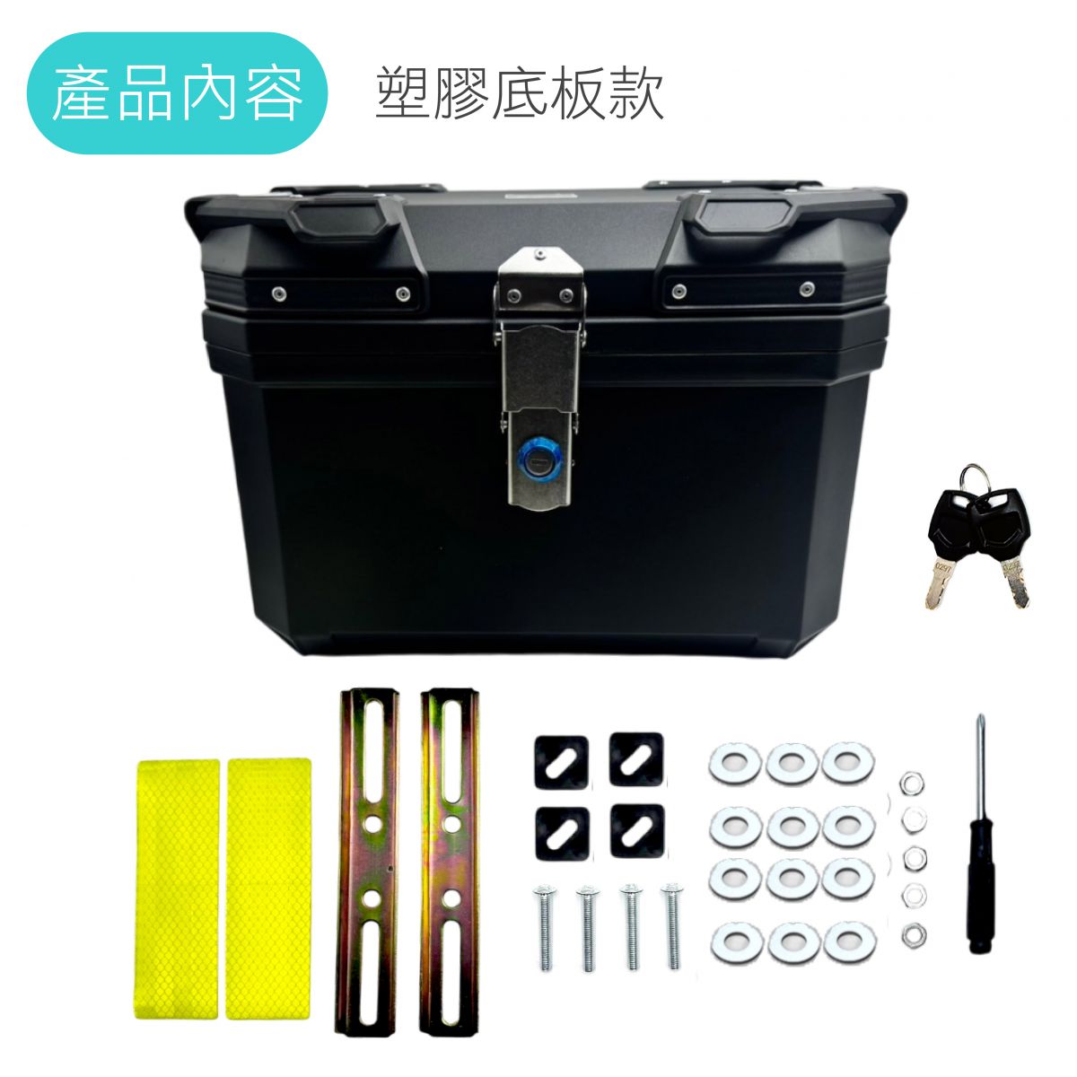 內容:行李箱、快拆底座(含螺絲)、皮革內襯、鑰匙、反光貼紙
