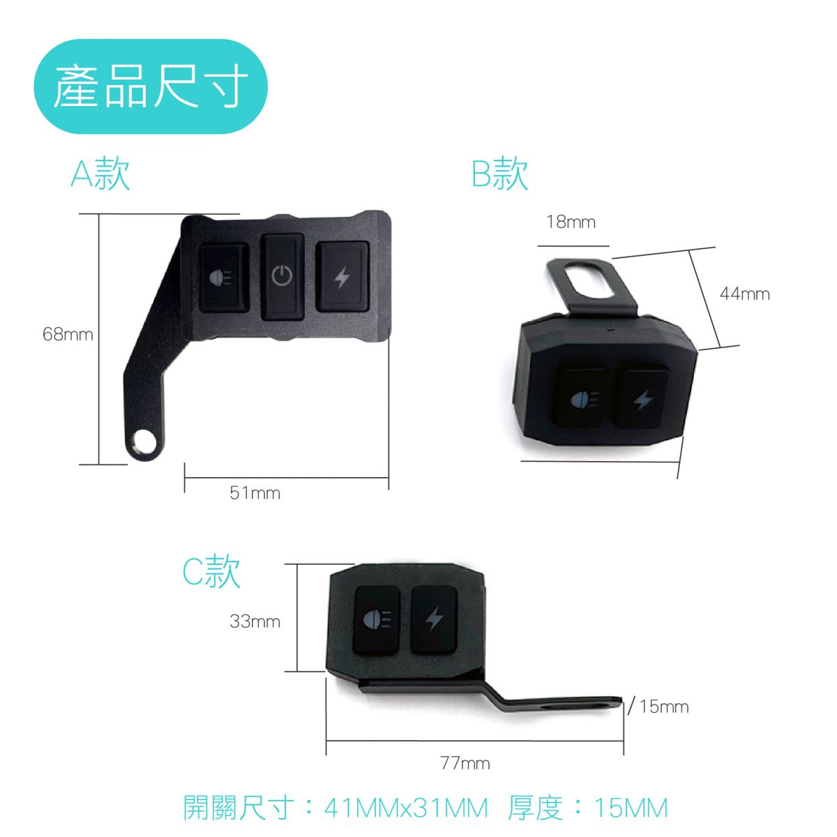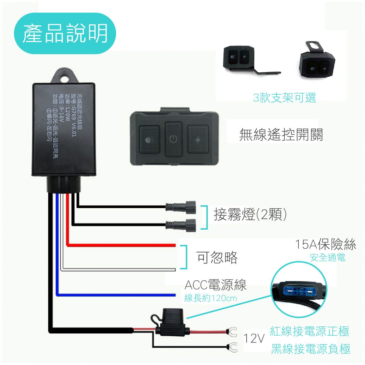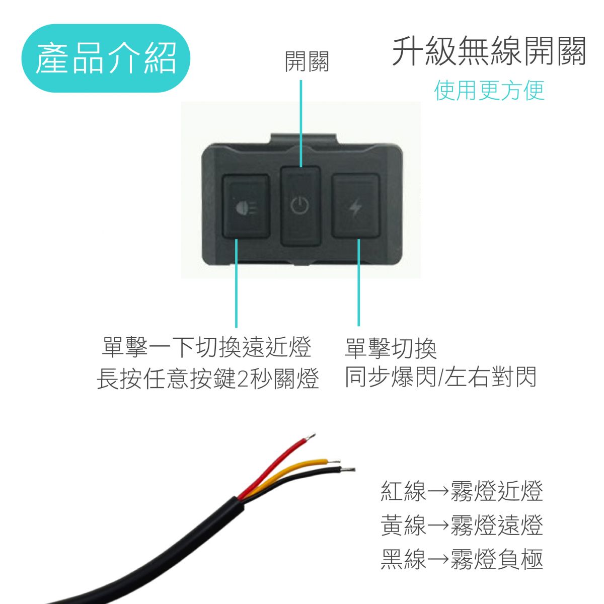 功能:可設定恆亮開關、遠近燈切換、雙色燈(黃白)切換、爆閃(交叉)模式