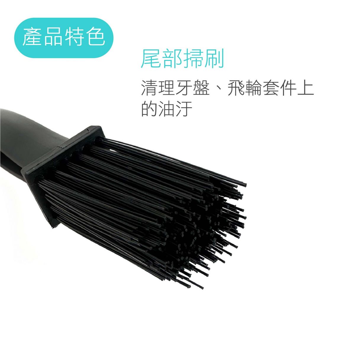 尾部掃刷清理牙盤、飛輪套件上的油汙